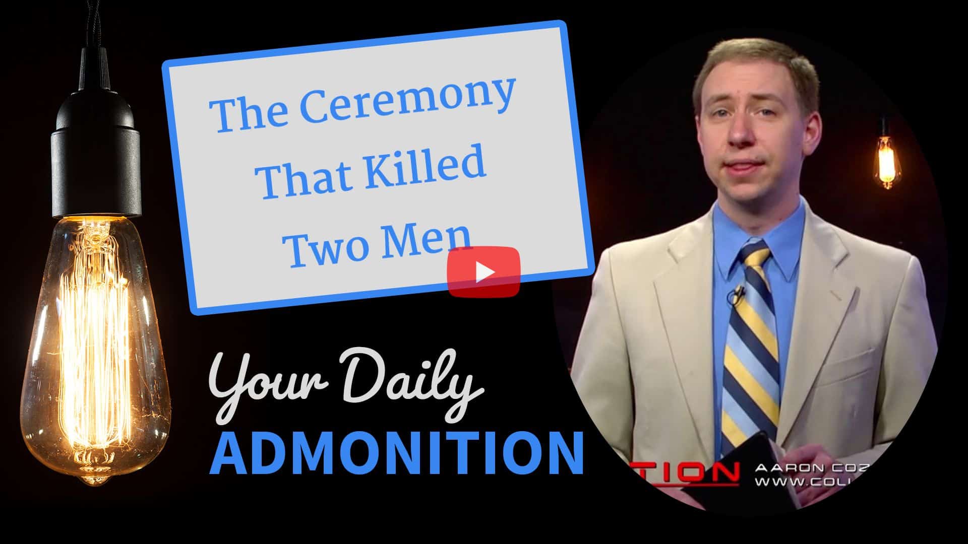 Two men were invited to take part in the ceremony. They were invited to take part in the beginning of a ceremony that that would set and alter the course of an entire nation. And they didn’t live through the experience. Aaron had two sons names Nadab, and Abihu. He had four… those two we’re talking about, Nadab and Abihu were priests of God. They were supposed to offer fire and incense upon the altar and they didn’t do it properly. And do you know why? If you read Leviticus chapter 10 very carefully, you’ll find out why… they were drunk. They didn’t know the difference between one fire and another, and they put the wrong fire on the altar and God took their lives. Don’t drink.